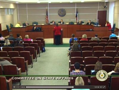 The picture on the right is a still frame of me (in red) speaking before the committee.